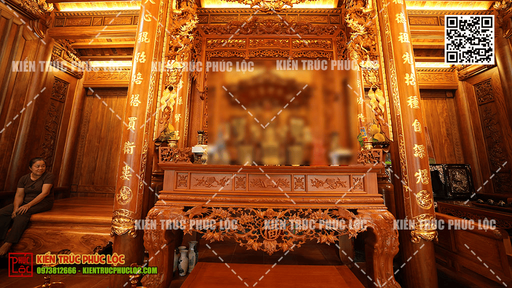 Lớp cửa võng tựa như một bức rèm tâm linh, vừa che chắn luồng khí xấu từ bên ngoài, vừa thanh lọc và dẫn dắt tài lộc vào bàn thờ tổ tiên. Khi quý gia chủ thắp hương, ngũ phúc trên cửa võng như kích hoạt phúc khí từ thần linh, tổ tiên chảy xuống gia đạo. Đây là vị trí mang tính biểu tượng cao nhất về sự kết nối âm dương trong nhà gỗ.